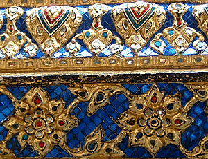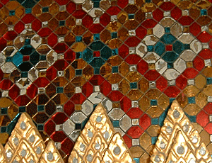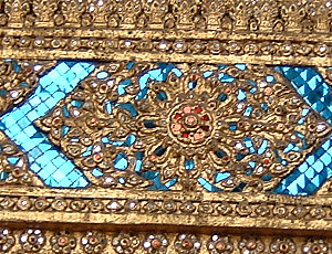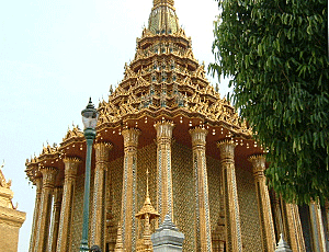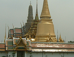 | 道路が込んでいてなかなか進めない 帰りもそれを見込んで移動しないといけないなあ・・・と思ったほど 11:25 王宮前に着 短パン・サンダル・肌の露出は断られるとか 入場料を払って、正面が受付 ここから入る 汗を拭きながらの見学 金箔で光り輝く建物(寺院や宮殿)が次から次へと続く あまりにも美しくあまりにも暑いので じっくり拝観したいがとてもできない 1時間が精一杯の努力 もうちょっと足を伸ばしたい息子にもういいよ〜 涼しいタクシーに乗りたい〜と言ってしまった・・・ ・・・・・・・・・・・・・・・・・ |
