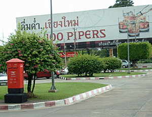 | チェンマイ空港を出たところ チェンマイ 14:45着 くもり すぐタクシーで息子がいつも利用しているという ゲストハウス バーンジョンカムへ チェンマイは一方通行が多くて、 近くでもぐるりと回って行かなければならない |