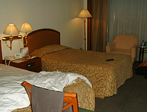 ホテルに着 17:30 昨夜までのホテルと仕様は同じだが 1つずつが豪華である 家具調度は立派、 タオルは新品同然 絵画も趣味がいい、 シャンプーや歯ブラシセットもある 私に言わせれば 宿泊以外の設備で 料金を高くしているだけ 本質的には1部屋550B(1650円)と 71ドル(7100円)の 違いがあっても 快適さは変わらない それにしても日本の山小屋の 1人8500円と比べて なんとお安いこと〜〜 |