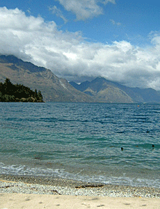 次の観光は、 トーマス・ホテルのすぐそばの 「クイーンズ・タウン・ガーデンズ」 そこへ行く途中、 あまりワカティプ湖がきれいなので 青色が3色になってきれいに澄んでいる |
