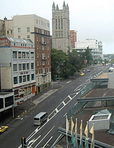 | シティ・セントラル・ホテルの部屋から 見下ろすオークランド市街中心部 オークランドには、20:30頃着いたが、 なんともう薄暗くなっていた!! 客引きのバックパッカーズ・シャトルで シティ・セントラル・ホテルへ そこでドロップ・オフ 名前の通り、玄関は今までにない 豪華な造りだった・・・が、 未清掃の部屋へ通されたり、 2人なのにタオルが1人分しか なかったり、ツインだが、 ベッドの間が狭く 通るのに苦労するほど狭かったりと 外観ほどいいサービスではなかった・・・ |