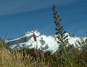 手前にジギタリスなどの花を持ってきた バックはマウント・セフトン |