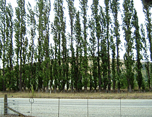 | 道路との境界・隣人との境界?の 所だけは, 大きな大きな木がある これらの木がもともとの ニュージーの姿か? 牧草地にするため、 木を切り倒し牧草になる種を撒いた結果が 今のニュージーの姿になったのか・・・?? と思う |