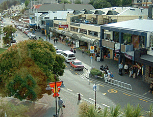 窓から見下ろす町の風景 銀行、レストラン、お店が立ち並んでいる ここで娘の靴を買うことにする ザンバランの痛い靴は マウントクックのYHAへ捨ててきた 9時の閉店まで、2軒廻ってあれこれ 出してもらってじっくり選んだおかげで、 翌日からはるんるん やはり、足に合う靴は大切!! |