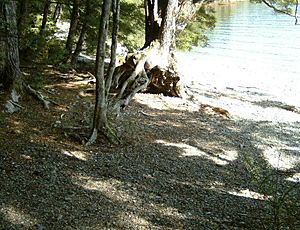 | 海(湖)水浴場 対岸のテアナウからモーターボートで こちら側に来て楽しんでいる風 休憩していると、すぐサンド・フライ (ニュージーランド・アブ)がよってくるので おちおち休んでおられないのに 幼児連れの裸のファミリーがいる 刺されないのかしら? それともそんなことに拘らないのかしら? |