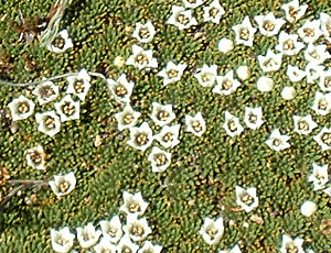 アルパイン・クッション ロック・クッションという似た花もあるが これは湿地に咲く花 |