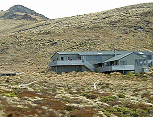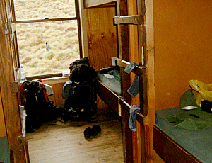 | ラクスモア・ハットの2階 到着しても受付はなし 適当な所にザックを置いて 自分の場所を確保する 19時にワーデン(小屋番さん)が ハット・パスを取りに来る ハットの中は、登山靴は禁止 サンダルが多かったが 私は機内用のスリッパ 裸足で歩いている人もいる 街中でも裸足の人がいるのには驚いた |