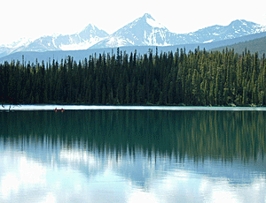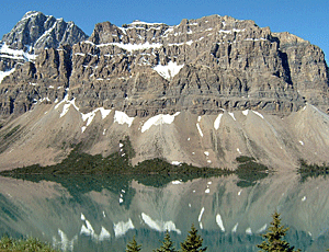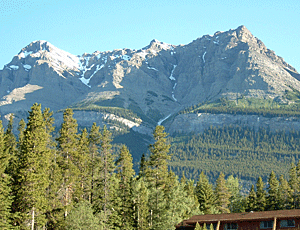 レイク・ルイーズへ行くときカメラ休憩した 展望台で、今日も休憩 あの時はガスがかかっていたが 今日は素晴らしい青空 湖のさざなみもだんだん凪いで 山が映りはじめた絶好のチャンス |