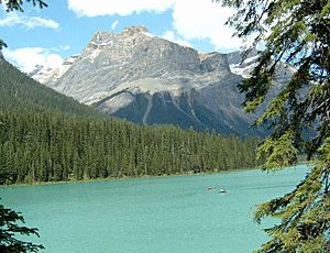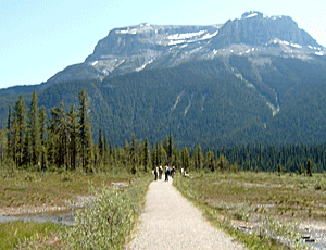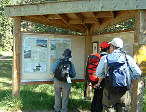 アイス・フィールド・パークウエイから エメラルドレイク方面へ右折 ロッジ近くの駐車場に車を止め 案内板を見ると |