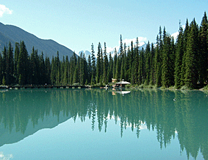レイク・エメラルドを回り込んだところ 雲がばっちり映っている |