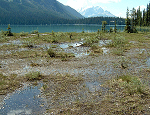 大雨が川が流れ込んできて 湖の水量が多くなったあとに、水かさが減った・・・という感じ |