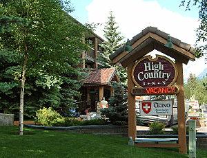 ハイ・カントリー・インというのが ホテルの名前 「空き室あります」とも書いてある |