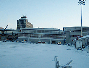 これもバンクーバー空港 遠くに白い山が見える・・・ |
