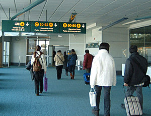 空港まで10分くらいで到着 最後までやまみやさんが 付き添ってくださって心強かった 「水は飲んで見せること デジカメは スイッチを入れること・・・」 などの注意を聞いておいてよかった そのほか、 バッグの中の眼鏡ケースも開け、 バッグのポケットの中も しっかり調べて ようやく通過 勿論、上着もベストも脱いだ 小さなはさみが手荷物に入っていたと 足止めされていた男性がいたが レイバンツアーの責任者の人に頼んで 自宅へ送ってもらう手はずとなった 小さい物はほんと うっかりすることがある 搭乗口から飛行機までは 寒風の中を歩く この寒さも今日でお・わ・り・・・ |