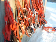 | ベックスさんの犬舎で この長いそりに乗って移動するのか・・・ こんなそりだと、15〜16匹で引っ張る ・・・と |