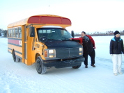 日本から申し込んでおいた、オプショナルツアーは 「犬ぞりでいくオーロラ観賞」と「カナダ体験ツアー」の2つ。 「犬ぞりでいくオーロラ観賞」は、夜の雪原をチャンピオンレース犬に引かれ、 イエローナイフの郊外のオーロラ観賞スポットに行く・・・という企画。 「カナダ体験ツアー」は、スノーシューで氷結した湖の上を歩いたり、 アザラシの毛皮に乗って雪の斜面を滑り降りたりと面白そうな企画。 どちらも、昨日のオーロラワールドより寒いと聞いて、もう1枚中へ着込もうと つなぎの服をワンサイズ大きいのと換えてもらった。