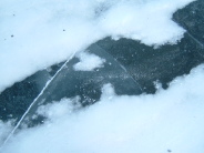 市内観光 アイスロード 雪の下から氷が覗く |