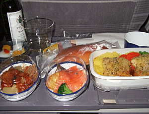 JALの機内食はなかなかおいしい ワインがボトルで来るのもうれしい |