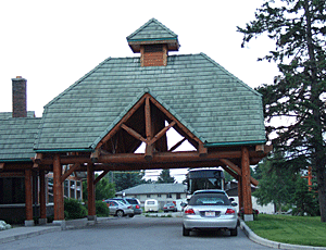 玄関先には団体用の大型のバスも 停まっている |