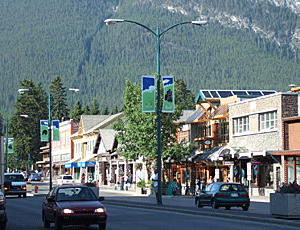 街路灯の幟は カナダの象徴(熊・列車など)らしい |