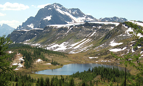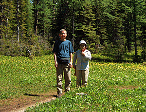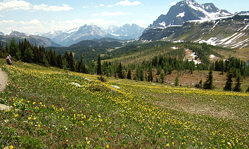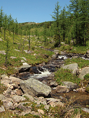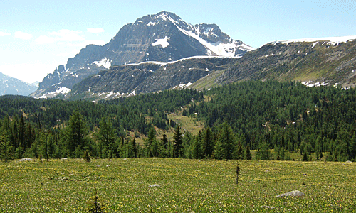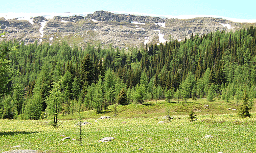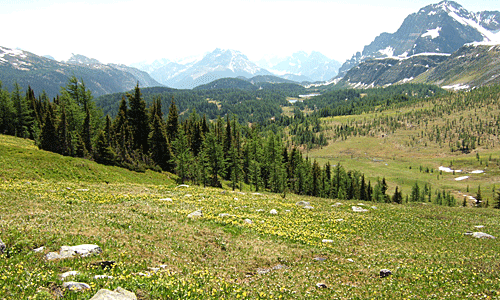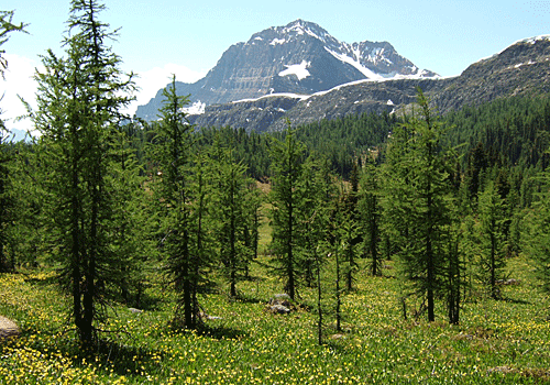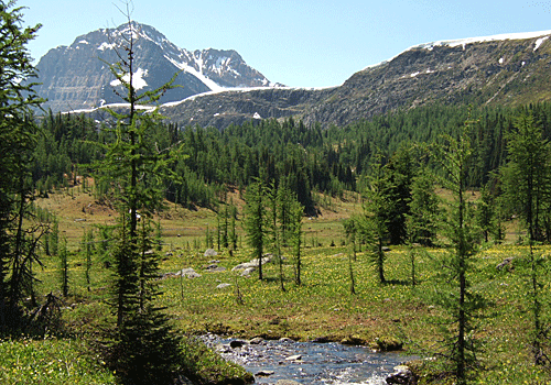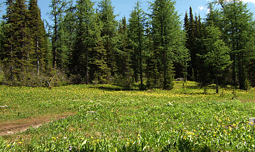雪の白・針葉樹の緑 グレイシャーリリーの黄色 その中を流れる沢は 雪解けの水 |