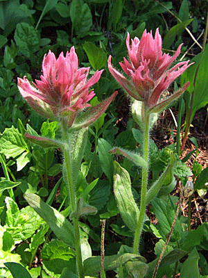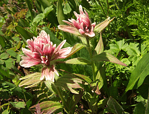 カナディアンロッキーを代表する花だと思う 色づいているのは包葉 寄生植物だそうだが 高速道路の脇に群生していた お店にはこの花の種も売っていたが 日本では無理だろうとあきらめた |