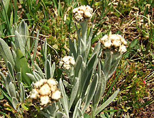 雪解けしたばかりらしい 花もめっきり数が減ってきた 白っぽく見えるのは ウーリー プッシートーズ |