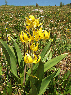 前回見たグレイシャリリーの群生より 何倍も素敵だ・・・と、ガイド氏 花は1週間でずいぶんと変わってくるから どんな咲き具合か楽しみ! |