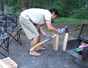 薪は無料 薪置き場から貰ってくる ここでキャンプファイヤーや デザートつくりやビーフを焼いたりする |
