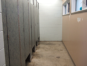 キャンプ場といっても このトイレしか設備がない 水は近くを流れる川を利用するらしい そんな場合は、沸騰より簡単な 2種の液剤を混合した物を投入して使う ・・・と、ガイド氏 |