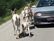 キャンプ場へ向かう途中の道で ヤギに出会った 群れを作って道を舐めている 融雪剤の塩分を舐めているとか? 悠々と林の中へ帰っていった |