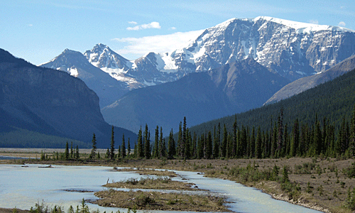 アサバスカ氷河から流れるのに