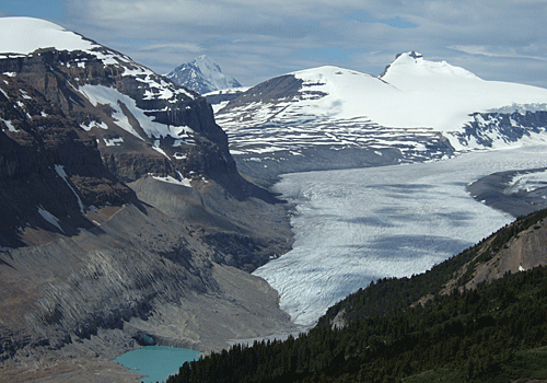コロンビア大氷原から流れ出す氷河には