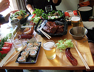 野菜・フルーツを並べて宴会