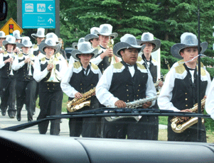 バンフの町に着いた 7月1日はカナダデー お祭りがあったようで 鼓笛隊のような服装の たぶん中学生くらいの列に出会った |