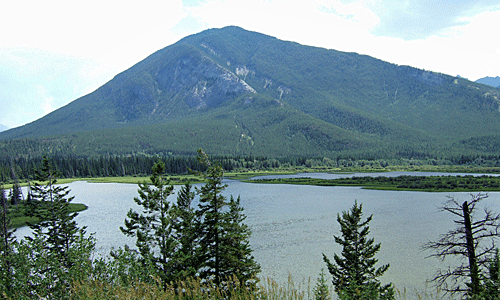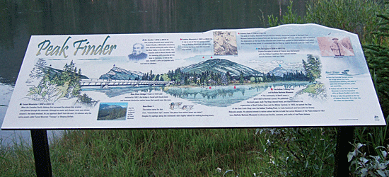 バンフの近くにある好展望地の広場 ここから サルファー山・カスケード山・ ランドル山・・・が見える こんな案内板が展望のいい あちらこちらに立ててあるので 分かりやすい |