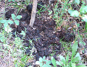 これが熊の糞? ガイド氏は彼(熊)を驚かせないように 曲がり角では手をたたいて 人の気配を知らせている 鈴は小熊が興味を示して 近寄ってくるので 話し声の方がいい・・・と |