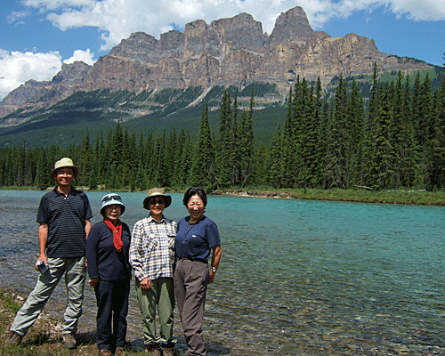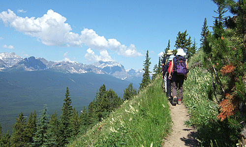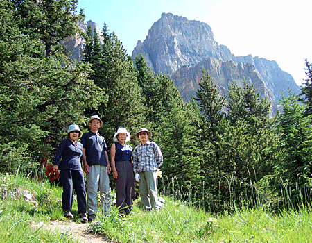 キャッスルマウンテンを クライミングしてきたという 数名のパーティーが降りてきた カナディアンロッキーには ゴツゴツした山がどこにでもあり クライミングが楽しめそうである |