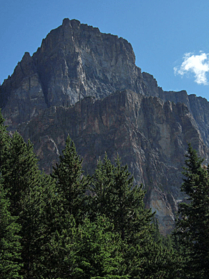 キャッスルマウンテンには あまりにも近づきすぎて 仰ぎ見ることができない これはずっと離れた川辺から 写した山容 |