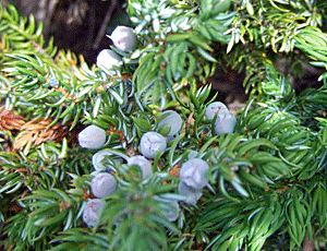 この特有なにおいが お酒のジンの香り付けになるそうだが 飲んだことがないので分からない マツヤニ臭い・・・としか言いようがない |