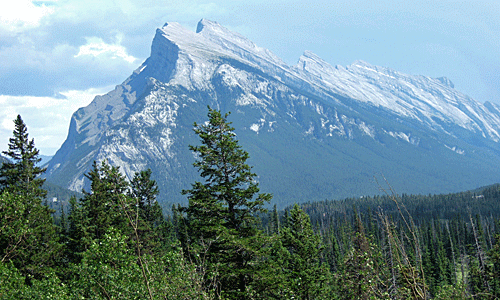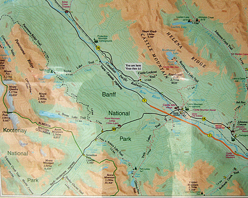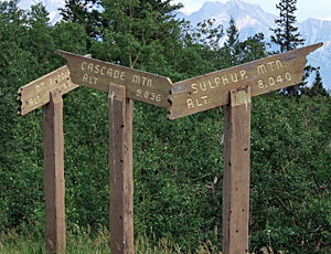 ピークの名前が図で示してある Mt.ランドール トンネル・マウンテン サルファー・マウンテン ・・・などと |