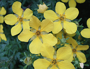 石垣に黄色と白色が並んで植えられていた キンロバイとギンロバイ・・・といった感じ あちこちの家の庭先でも、ずいぶんと咲いていた |