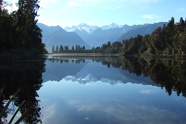 晴れていて 雲がなくて 湖が凪いでいれば マウント・クックとマウント・タスマンが 湖に投影される・・・・と |