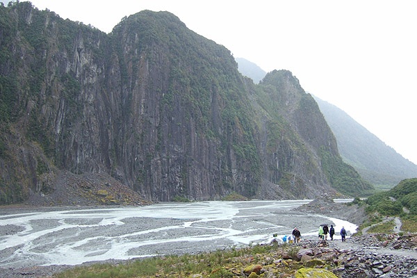 駐車場から30分で氷河まで行けるので 手っ取り早い・・・とうたってっているが ジャングルあり、河原ありの フランツ・ジョゼフ氷河のほうが 魅力的だと思った おまけに、ここは 落石地帯の通過がほとんどなので 「立ち止まらないで」の標識が あって、せわしない |