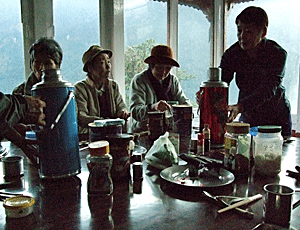 | それぞれにボーナスを ポーターの1人1人へ アシスタント・ガイド1人1人へ キッチン・ヘルパー1人1人へ メンバーは、代わる代わる ボーナスの入った封筒を 渡す係りになった |
