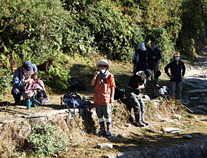 ゴビンダさんの歌 ゴビンダさんは、トレッキング中も 歩きながら歌っていた ビドゥルさんも それに合わせるように歌っていた 歌を聞くのも明日が最後・・・ 我々のお返しの歌は 「富士山」 「あ~たまをく~も~の~ う~えにだ~し・・・・」の歌 それも振り付けつきで 私はタンバリン係り |