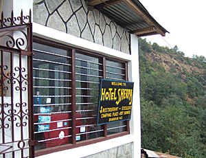 | ホテル・シェルパが ホテル・シェルパが今日の宿 14:55着 部屋にゆとりがあるようで 今日は1人部屋となった 明日はもうトレッキング最終日で ポカラに帰るので 今日はお祝いのパーティーがある |