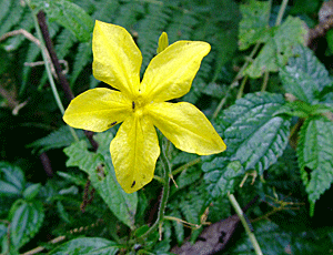| 黄色い蛍光色の花 背丈は高くても20cmほど あちこちで咲いていた |