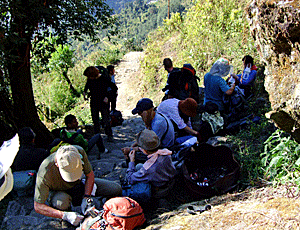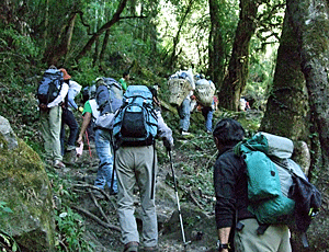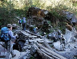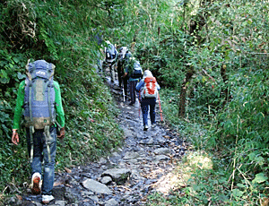 ポーターが追い抜いていく ポーターが荷物を置いて休めるよう また、トレッカーがザックを置いて 休めるような場所が随所にあり、 感謝して利用させてもらっ |
