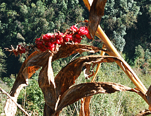 | トウモロコシのような茎と葉っぱだが 赤い実がなっていた |